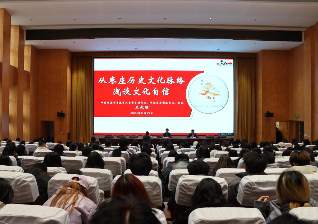王光明以“从枣庄历史文化脉络浅谈文化自信”为题,深刻阐述了习近平文化思想的精髓要义,从“时、空、人”三个纬度全面剖析枣庄历史文化,具体论述了文化自信在国家建设、民族复兴中的重要作用。王光明强调,文化自信不仅是对自身文化的认同和自豪,更是对未来发展的信心和动力。他通过分析枣庄历史文化的特点和发展历程,指出枣庄人民在历史长河中积淀了丰富的文化底蕴,孕育出了众多优秀的文化成果,形成了诚实守信、精益求精、自强不息、开放包容、重教求实、守正创新的城市精神,鉴往知今,为我们在新时代发展枣庄、繁荣枣庄提供了强大的精神动力。