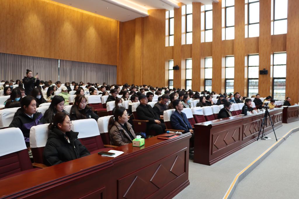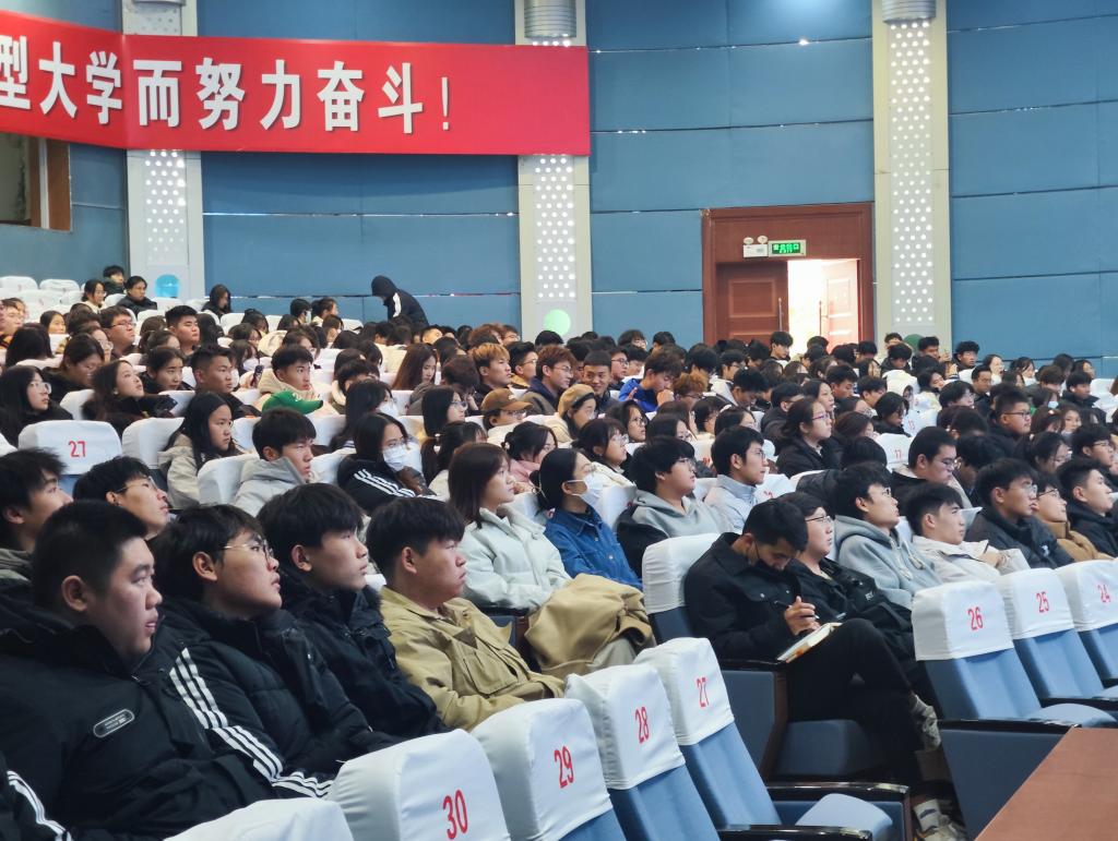 本次报告会分别在薛城校区崇德楼报告厅、市中校区综合楼学术报告厅采用主会场和分会场同步直播方式进行,援疆实习支教团、各二级学院师生现场和线上聆听报告。
