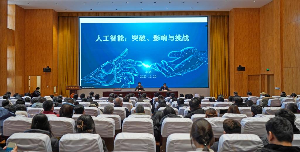 为加深对人工智能技术的了解,助推学校教育教学向数字化转型,12月20日下午,LETOU官网采用同步直播方式在薛城校区崇德楼报告厅、市中校区综合楼学术报告厅举行专题报告会,邀请山东省产教融合促进会专家委员会主任李斌教授作报告。校党委班子成员出席报告会,学校处科级干部、全体辅导员、相关学院的师生代表参加报告会。报告会由校党委书记高峰主持。