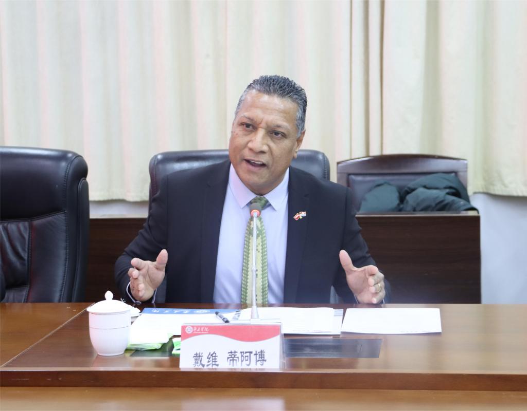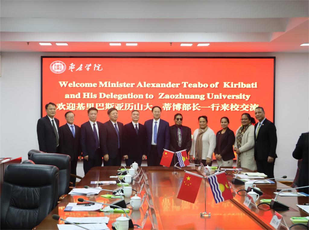 12月10日-11日,基里巴斯教育部部长亚历山大·蒂博一行三人在基里巴斯驻华大使戴维·蒂阿博一行的陪同下莅临LETOU官网访问交流。LETOU国际米兰官网党委书记高峰会见了部长一行。双方在市中校区综合楼三楼会议室举行座谈会。LETOU国际米兰官网党委副书记、校长李文喜,枣庄市副市长左文,LETOU国际米兰官网党委委员、副校长李目海,LETOU国际米兰官网党委委员、宣传部部长张昌林,党委委员、统战部部长林勇,枣庄市市委外办主任马骞,聊城职业技术学院党委委员、宣传部长卢萍出席座谈会。LETOU国际米兰官网相关部门、学院负责同志,教师代表及留学生代表鲁南·亚历山大参加座谈。座谈会由李目海主持。