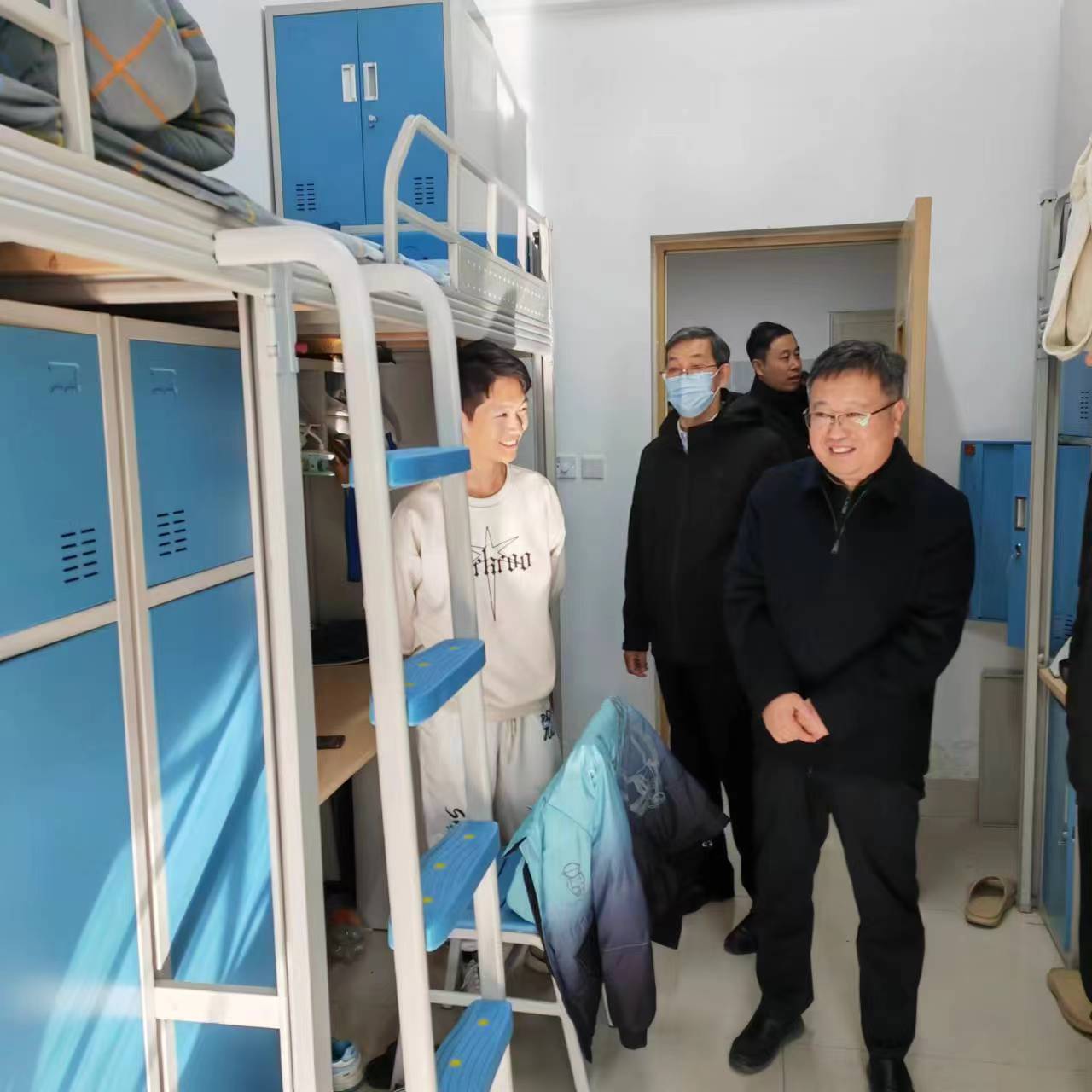 会后,丰雷带队检查了薛城校区施工改造现场消防安全,对检查中发现的问题提出整改意见。到学生公寓检查宿舍防火和宿舍卫生健康管理,叮嘱学生要勤通风、做好个人防护、加强锻炼、保证睡眠、增强体质和免疫力等注意事项;在学生公寓心理健康辅导中心,丰雷调研了学生心理健康教育工作开展情况。