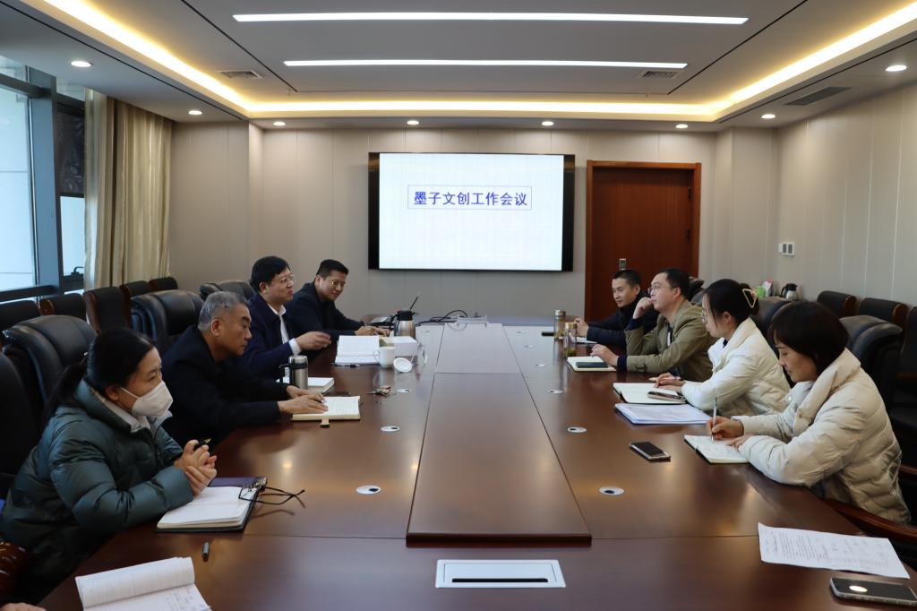 会上,墨子研究院史大丰就墨子文创和班墨故事创作工作做了汇报,梳理了“止楚攻宋”“耕柱仕楚”“高石子向义”“越王迎墨”等墨子故事,“齿草作锯”“点石成磨”“仿鞋作舟”“谷亭鱼台”等鲁班故事,并就故事和脚本创作注意的问题作了说明。墨子文化创意相关部门负责人和教师对下一步墨子文创工作提出针对性意见和建议。