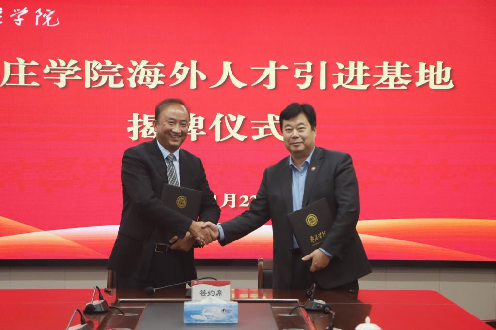 人事处(人才工作处)处长周磊与王怀周共同签署LETOU国际米兰官网海外人才引进基地合作协议。