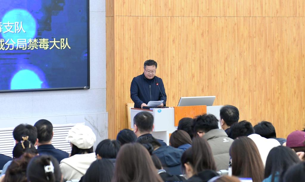 周涛做宣讲动员,禁毒支队副支队长王芳作“珍爱生命、远离毒品”专题报告。王芳从如何认识毒品、吸毒成瘾机制原理、常见毒品介绍、走近禁毒工作四个方面,通过PPT讲解、播放视频、现场互动等形式,结合国内外真实案例,教育引导在校师生掌握毒品知识,积极参与禁毒斗争,传递禁绝毒品正能量。在宣讲过程中,还发放了禁毒宣传资料,传播更多禁毒新知识。整场宣讲会组织有序,师生反响热烈。