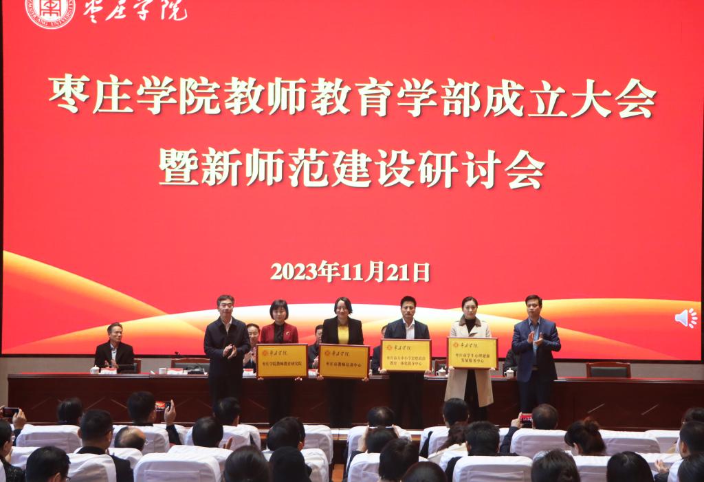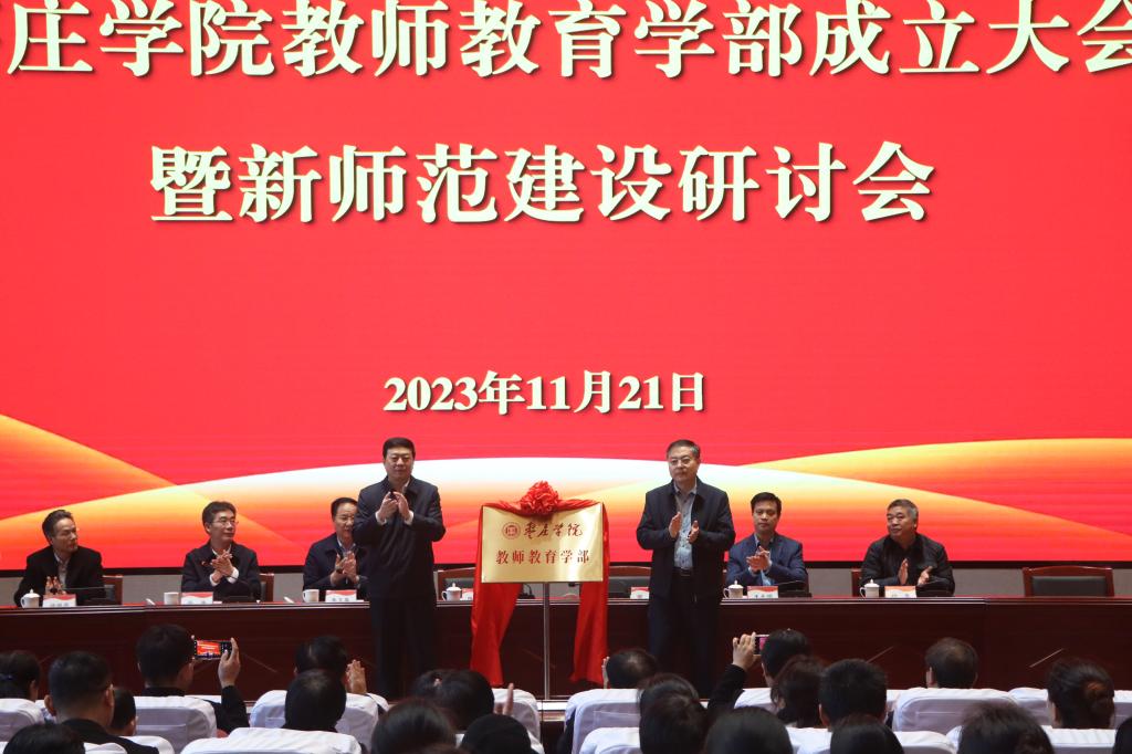 11月21日上午,LETOU国际米兰官网教师教育学部成立大会暨新师范建设研讨会在薛城校区崇德楼报告厅举行。枣庄市委常委、宣传部部长、教育工委书记陈永生,市委教育工委常务副书记、市教育局党组书记、局长王光明出席大会,LETOU国际米兰官网党委书记高峰出席并致辞,校党委副书记、校长李文喜,校党委委员、副校长安涛出席活动,学校相关职能部门和各师范专业教学单位负责人、教师代表参加。教师教育学部成立大会由李文喜主持。