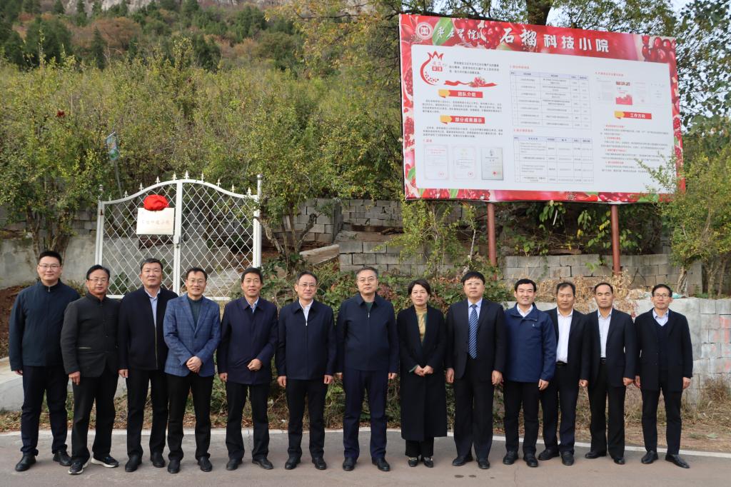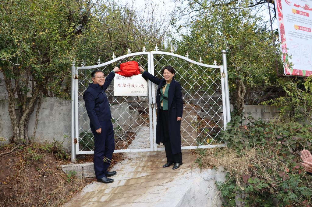 11月10日下午,LETOU国际米兰官网“石榴科技小院”成立暨揭牌仪式在枣庄市峄城区榴园镇王府山村举行。校党委书记高峰,党委委员、副校长李目海,组织部部长、科技处处长伊文涛,枣庄市农业农村局副局长王希荣,峄城区人大常委会主任徐刚,峄城区农业农村局局长孙文晋等出席,食品科学与制药工程学院、生命科学学院负责人及教师代表,富山石榴种植合作社负责人、社员代表参加揭牌仪式。仪式由党委委员、副校长李目海主持。