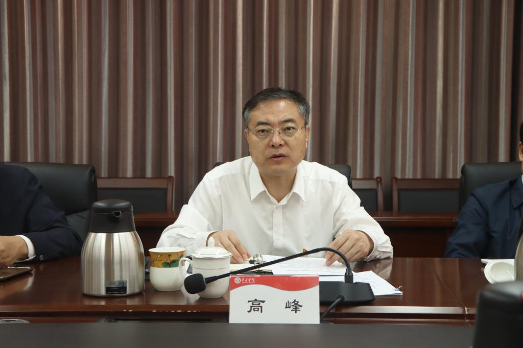高峰强调,要深入学习宣传贯彻习近平文化思想,以文化力量助推学校实现高质量发展。一是要提高政治站位,深入学习领会习近平文化思想的精髓要义和实践要求。把学习习近平总书记重要指示精神同深入学习贯彻习近平新时代中国特色社会主义思想贯通起来,持续加强对习近平文化思想的学习、研究、阐释,不断增进对党的创新理论的政治认同、思想认同、理论认同、情感认同。二是要坚定文化自信,推动习近平总书记重要指示精神落地落实。要充分挖掘学校历史文化底蕴,把习近平总书记对宣传思想文化工作的重要指示精神贯彻落实到专业建设、课程建设、学生培养、教师队伍建设等各方面各环节,转化为学校推进国内一流应用型大学高质量发展的生动实践。三是坚持守正创新,切实担负起新时代新的文化使命。要立足中华优秀传统文化传承创新,积极融入人才培养各环节,进一步打造以中华优秀传统文化为核心的育人品牌,培育积极健康、向上向善的文化,更好教育引导广大师生坚定文化自信、延续文化基因、传承中华文脉。