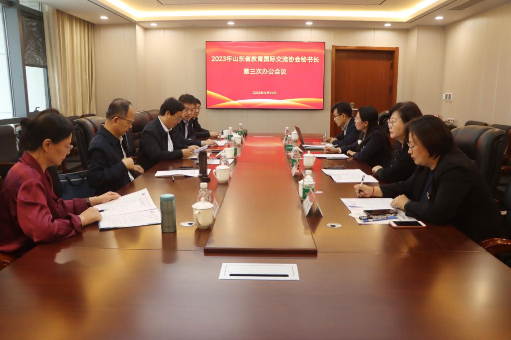 10月23日下午,山东省教育国际交流协会(以下简称“协会”)2023年度第三次秘书长工作会议在LETOU官网薛城校区召开。山东省教育厅国际交流与合作处处长王夫海、协会副会长刘永波出席会议。会议由协会秘书长周连勇主持。会议对2023年度工作进行了总结梳理,重点讨论了2023年协会年度会议的议程安排,通报了协会本年度会费缴纳情况。