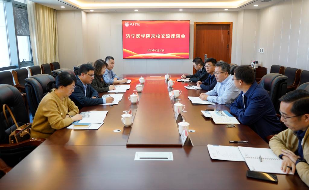 10月20日下午,济宁医学院财务处处长王正刚一行来校考察交流。党委委员、副校长丰雷在薛城校区明理楼五楼会议室主持召开座谈会,计划财务处、科技处、党委(校长)办公室等部门相关人员参加座谈。