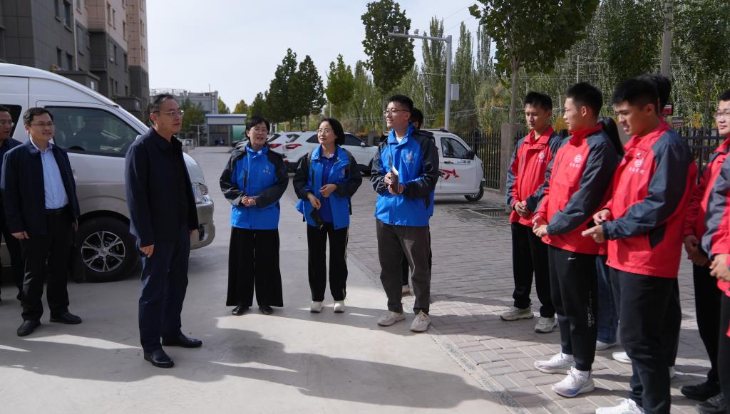高峰一行首先来到疏勒县翰林世家公寓看望实习支教师生,逐一走访宿舍,与大家亲切交流,详细了解师生工作生活情况。