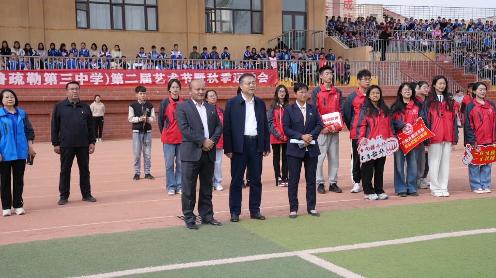 在疏勒县第三中学,高峰参加了学校举办的文化艺术季暨秋季运动会,近距离感受文化润疆的丰硕成果。