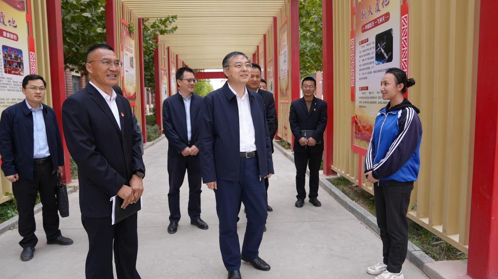 在疏勒县第二中学,高峰一行观看了实习支教师生与当地师生共同呈现的汇报演出,体会各民族师生欢聚一堂共抒家国情怀。