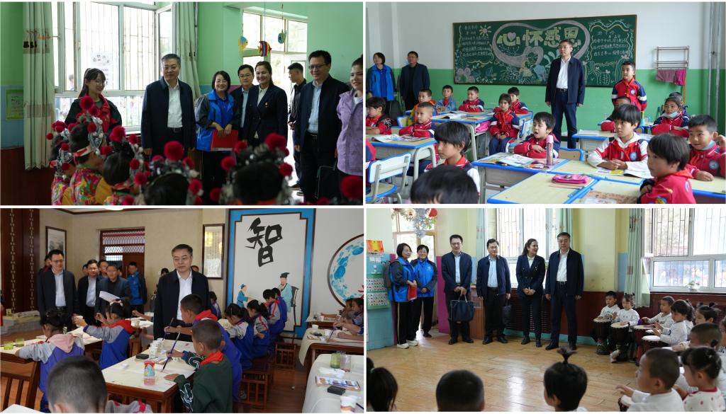 每到一处,高峰都详细了解支教师生的教育教学情况,与同学们深入交流课堂教学心得体会,提出指导意见并与大家亲切合影留念。