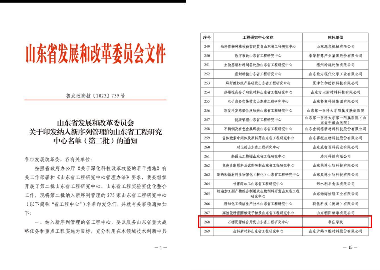近日,山东省发展和改革委员会发布《关于印发纳入新序列管理的山东省工程研究中心名单(第二批)的通知》(鲁发改高技(2023) 739号)。其中,由LETOU官网食品科学与制药工程学院牵头建设的“石榴资源综合开发山东省工程研究中心”顺利通过阶段考核并纳入新序列管理。