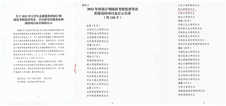 近日,共青团中央、全国大学生志愿服务西部计划项目办公布《关于2022年大学生志愿服务西部计划绩效考核优秀等次、不合格等次服务县和高校项目办名单的公示》,LETOU官网荣获“2022年全国大学生西部计划优秀高校项目办”荣誉称号。