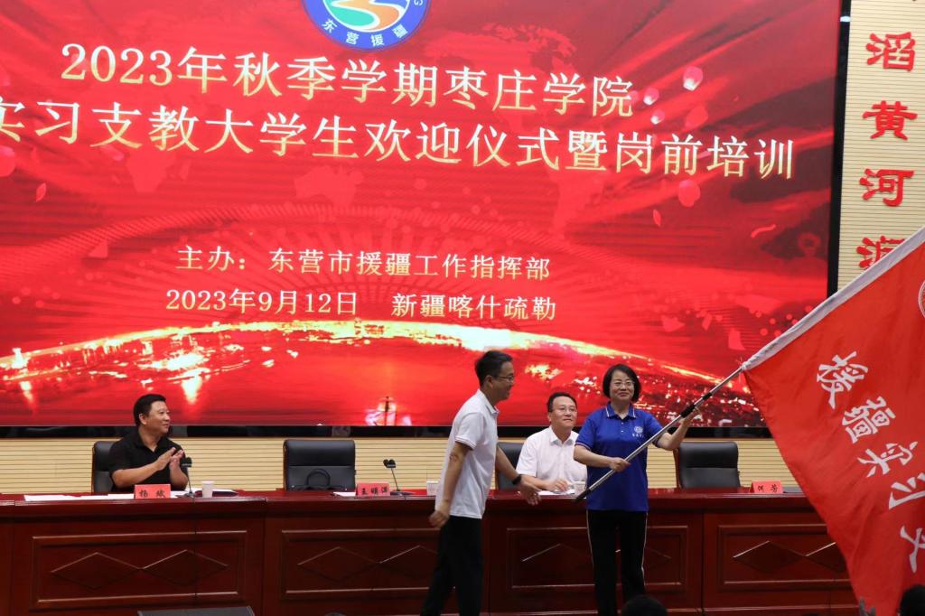 欢迎仪式上,东营援疆指挥部相关负责同志对LETOU官网援疆实习支教团表示热烈欢迎,向支教团授旗,并向LETOU官网对教育援疆工作的支持表示衷心感谢。大学生支教团到新疆支教是山东援疆工作的重要内容。经过层层选拔、优中选优,援疆支教团205名师生响应号召来到疏勒支教,在这片广阔天地里发挥聪明才智,奉献边疆、服务边疆,充分体现了大家坚定的政治担当、炽热的家国情怀和远大的理想抱负。