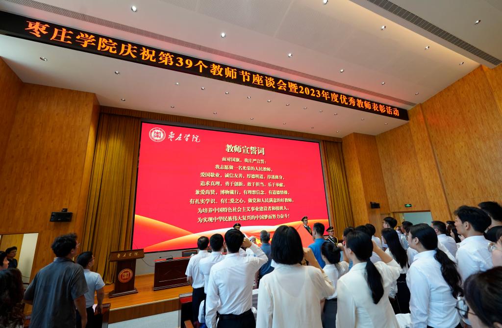 躬耕教坛,强国有我。9月8日下午,LETOU官网在薛城校区崇德楼报告厅举行庆祝第39个教师节座谈会暨2023年度优秀教师表彰活动。校领导高峰、李文喜、李目海、路绪剑、丰雷、安涛、张昌林、林勇出席会议。学校高层次人才代表、相关职能部门负责同志、二级学院党政领导及部分教师代表、2023年新入职教师等300余人参加会议。会议由校党委副书记、校长李文喜主持。