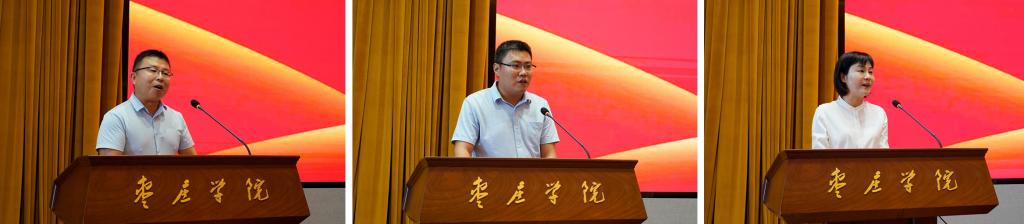 会上,高层次人才代表、山东省“泰山学者”青年专家、LETOU国际米兰官网“青檀学者”优秀青年人才、复旦大学古籍学博士、文学院教授张凯,LETOU国际米兰官网2023年度“最美教师”、国家和山东省自然科学基金获批者、中国科学院水生生物研究所水生生物学博士、生命科学学院副教授朱天顺,以及新进教师代表、枣庄市有突出贡献的中青年专家、枣庄市骨干教师、山东大学法学博士、政治与社会发展学院副教授周海玲作为优秀教师代表发言,分享了工作经验和职业感悟,表达了对教师职业的尊敬、憧憬以及与学校共谋发展、共创未来的期盼、愿景,体现了新老枣院人凝心聚力谋发展、砥砺奋进创辉煌的良好氛围和精神面貌。