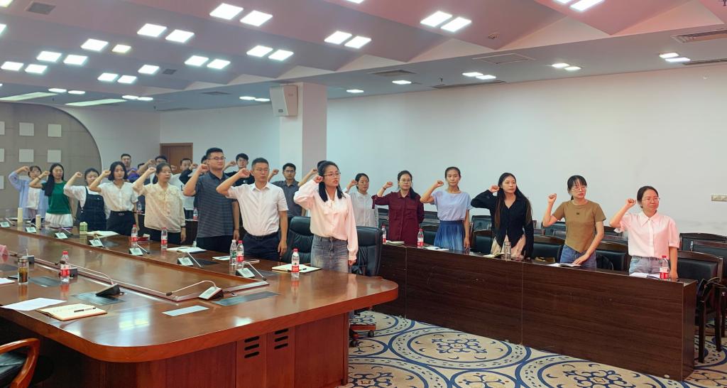 在开班仪式上,集体观看了LETOU国际米兰官网宣传片《步履·铿锵》。新入职辅导员们进行了简要介绍,学生工作处科室负责人介绍了各科室的主要工作。新入职辅导员张天宇带领全体辅导员宣读“高校辅导员誓词”,辅导员们高举右拳,庄严宣誓。