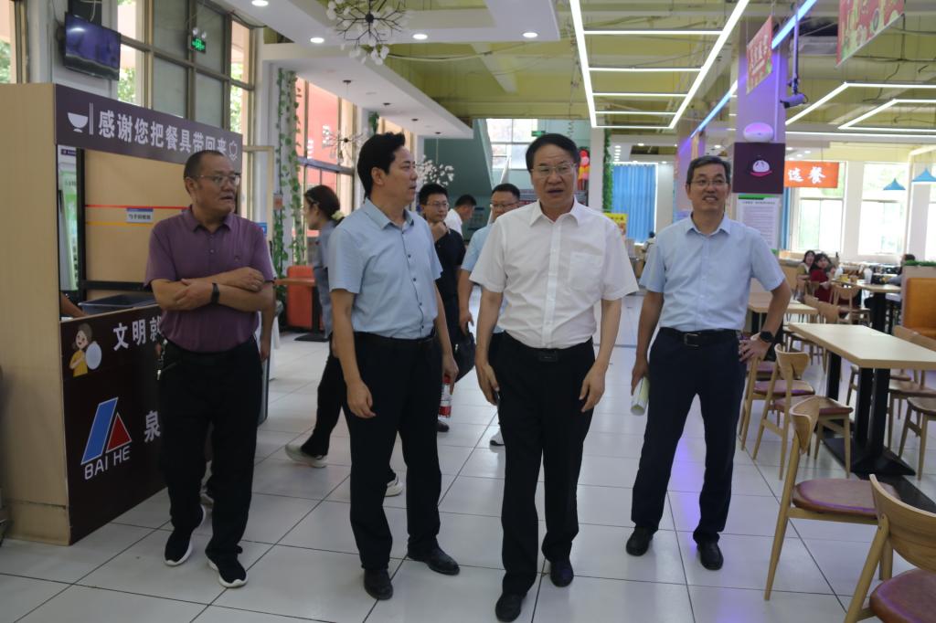 为提升新学期LETOU官网饮食服务保障工作水平,9月4日上午,校党委副书记、校长李文喜到市中校区食堂进行检查指导,学生工作处及后勤服务处负责人陪同检查。