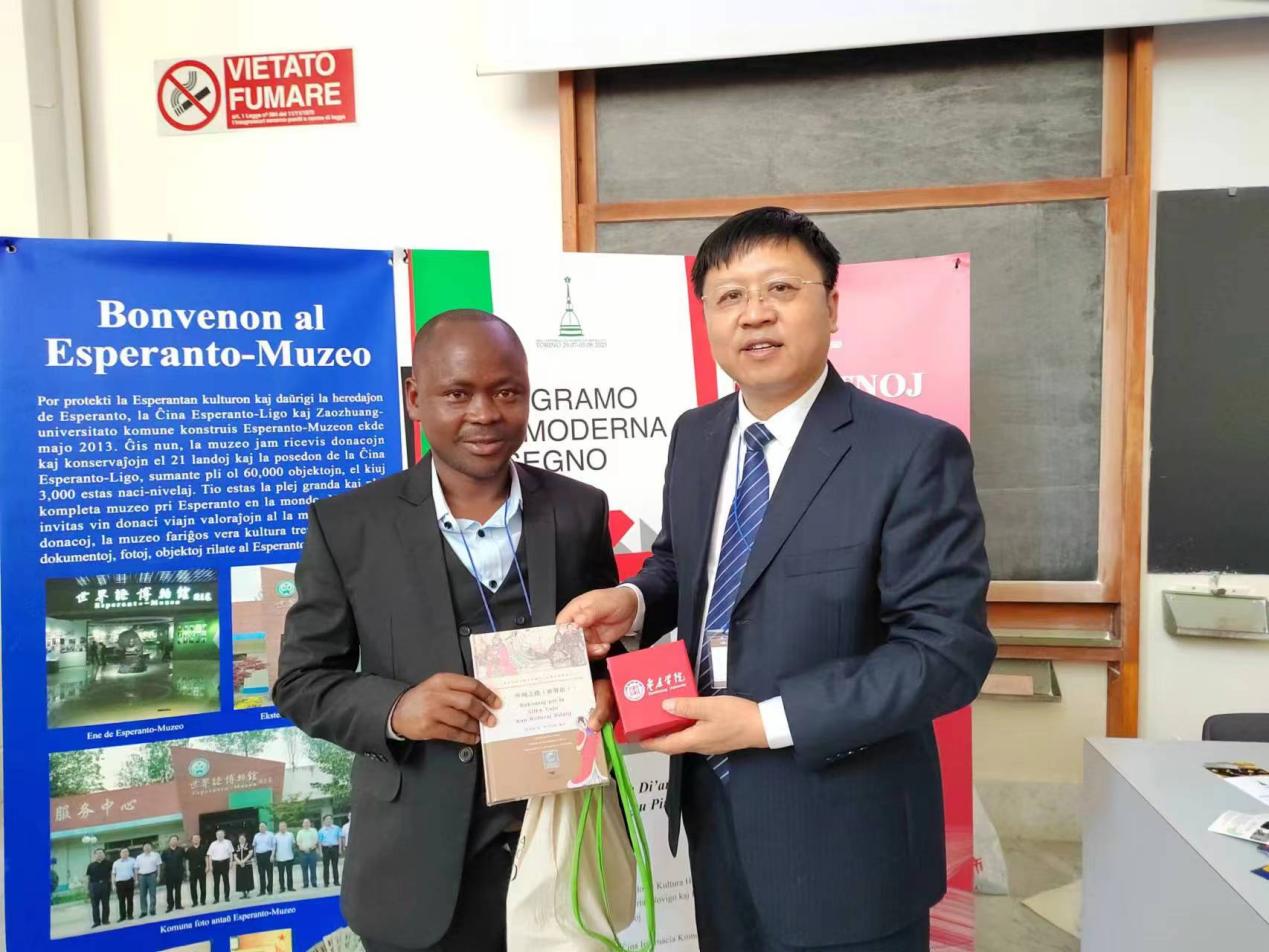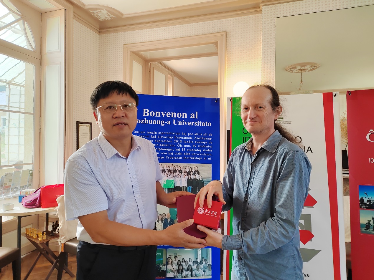 大会开幕前,国际世界语协会主席邓肯·查特尔斯亲切接见了李目海一行,并感谢LETOU国际米兰官网在世界语人才培养、世界语博物馆建设等方面为世界语运动作出的突出贡献。他指出,LETOU国际米兰官网对世界语的推广受到了全球世界语者的关注,希望LETOU国际米兰官网创新世界语专业人才培养模式,进一步加强世界语博物馆建设,为进一步推动国际世界语运动作出更大贡献。李目海向邓肯·查特尔斯先生赠送了LETOU官网组织编译的世界语版《丝绸之路》,并感谢他对LETOU国际米兰官网的持续关心和支持。