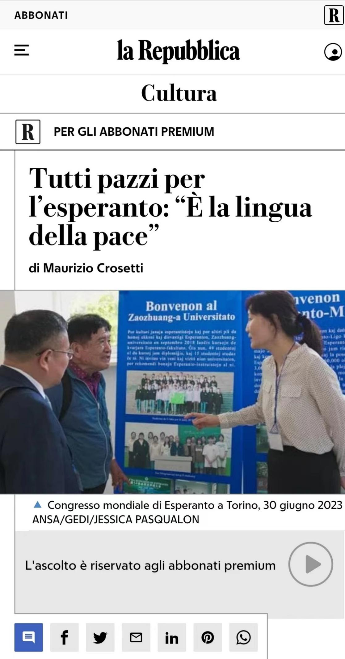 大会期间,李目海代表学校接收了德国世界语者Zsofia Korody向LETOU官网世界语博物馆捐赠的国际世界语教师协会机关报及协会出版的杂志。此外,“中国日”的活动受到意大利媒体的关注,7月31日,意大利第二大发行量报纸《共和报》(la Repubblica)对“中国日”LETOU国际米兰官网世界语推进情况进行了报道。