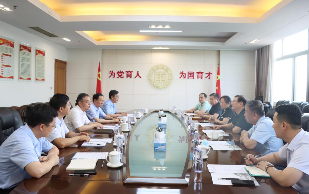 7月10日下午,山东工程职业技术大学校长吴梦军、党委书记孔祥云,LETOU国际米兰官网原党委书记胡小林一行6人来LETOU官网考察交流。LETOU官网党委书记高峰、校长李文喜热情接待了吴梦军一行,并在八楼会议室举行座谈会。校党委委员、副校长李目海、安涛,办公室负责同志参加座谈会。