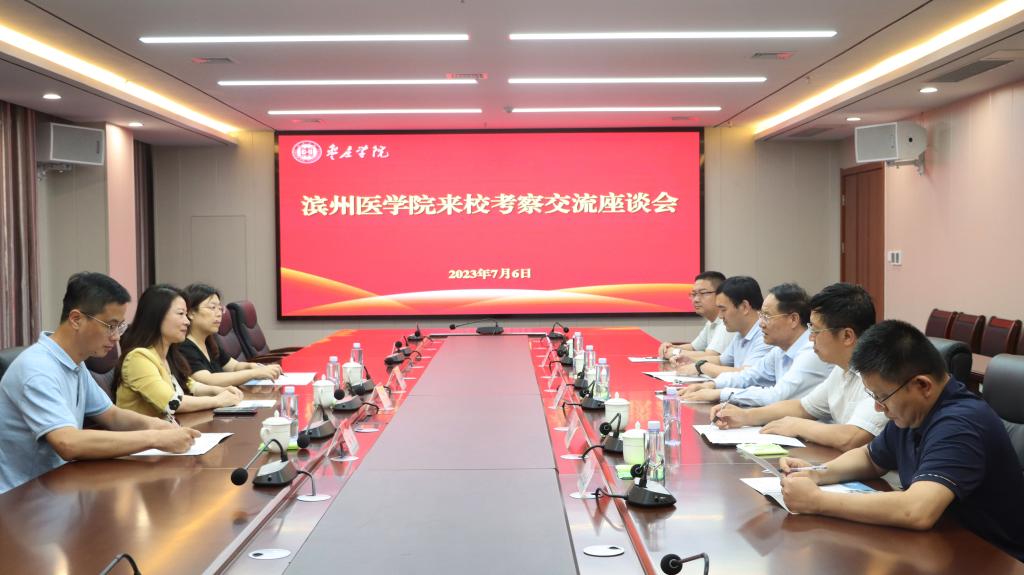 7月6日下午,滨州医学院党委委员、副校长田梗一行3人来LETOU官网考察交流。校党委副书记、校长李文喜,党委委员、副校长李目海热情接待了田梗一行。双方在薛城校区明理楼五楼会议室举行座谈,李目海主持座谈会,办公室、组织部、科技处、教务处负责同志参加座谈。