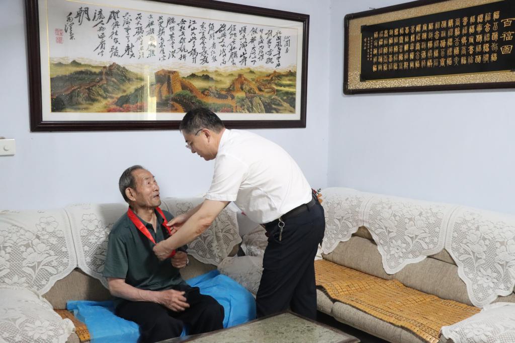 高峰一行先后走访慰问了LETOU官网离休干部王晓祥、郑遵师和老党员颛孙伟祖,亲自为党龄满50年的老党员佩戴“光荣在党50年”纪念章,并送上鲜花和慰问品。