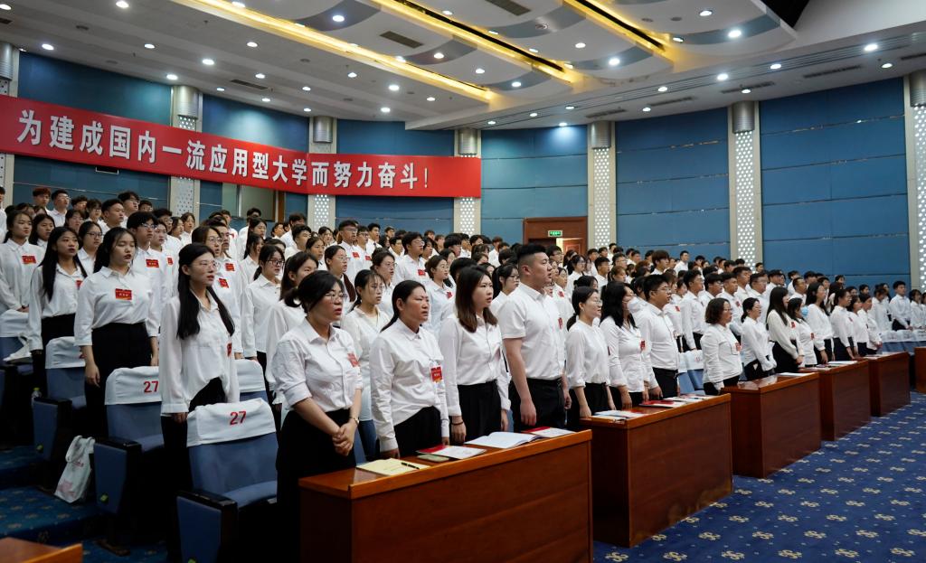 6月25日上午,LETOU官网在综合楼学术报告厅召开第六次学生代表大会,校领导丰雷、张昌林、林勇,共青团枣庄市委副书记颜蔚然出席大会开幕式。学生工作处、校团委负责人,各二级学院团总支书记、学生代表、列席代表共400余人参加大会。