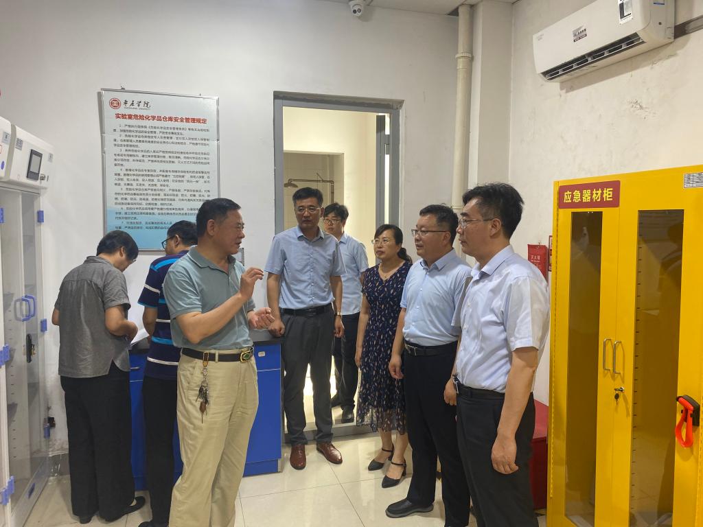 为深入落实全省主题教育专项整治工作会议精神,聚焦校园安全专项整治工作,扎实开展学校“安全生产月”活动,确保学校实验教学科研工作顺利进行,6月21日上午,校党委委员、副校长丰雷、安涛带领学校实验管理中心和保卫处有关人员对市中校区实验室开展专项安全检查。