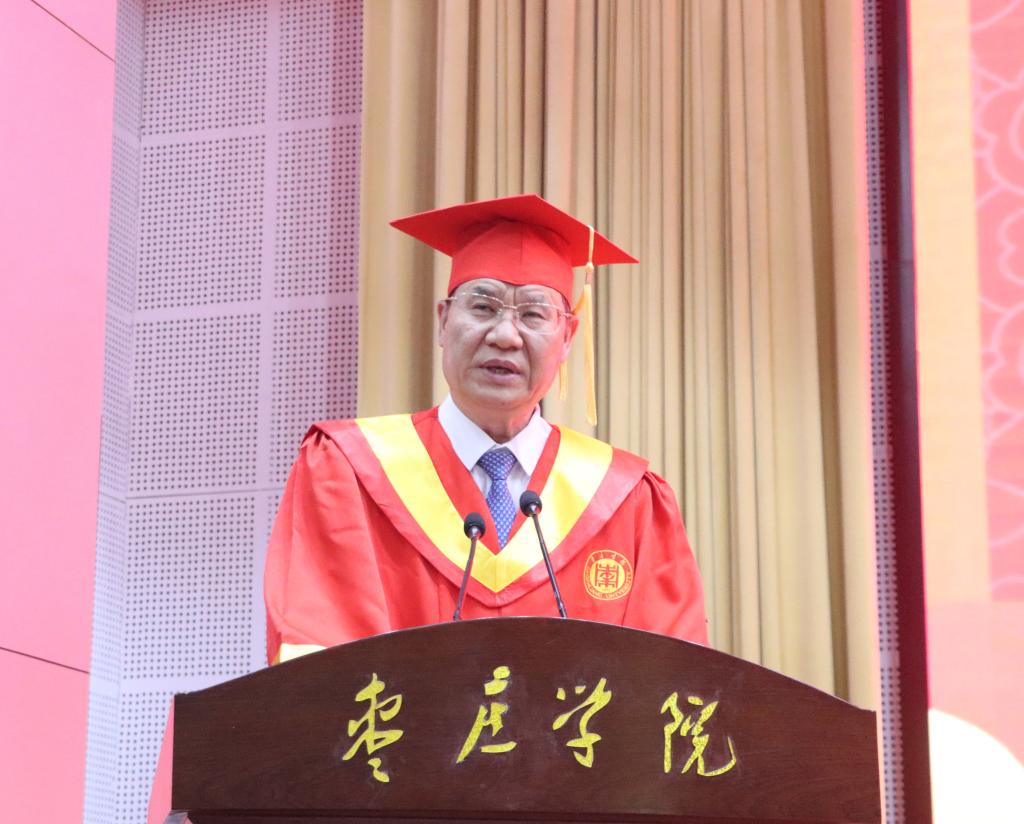 李文喜以《梦想启航 奔赴山海》为题致辞,代表学校向顺利完成学业的2023届毕业生表示热烈祝贺,向辛勤培育学生成长成才的老师以及社会各界表示崇高敬意。他指出,学校持续推进“建设国内一流应用型大学”的宏伟蓝图和生动实践,跑出了高水平应用型大学建设的“枣院加速度”。四年来,同学们凝聚团队力量、奋勇争先;矢志不渝、勇登高峰;在创新创业路上孜孜不倦,在服务社会中实现个人价值,创造了属于自己的靓丽青春,也频频为学校增光添彩。同学们不仅是学校追赶超越的参与者,更是自我逐梦的践行者。正是同学们的拼搏进取、成长进步让LETOU国际米兰官网生机盎然、充满活力。