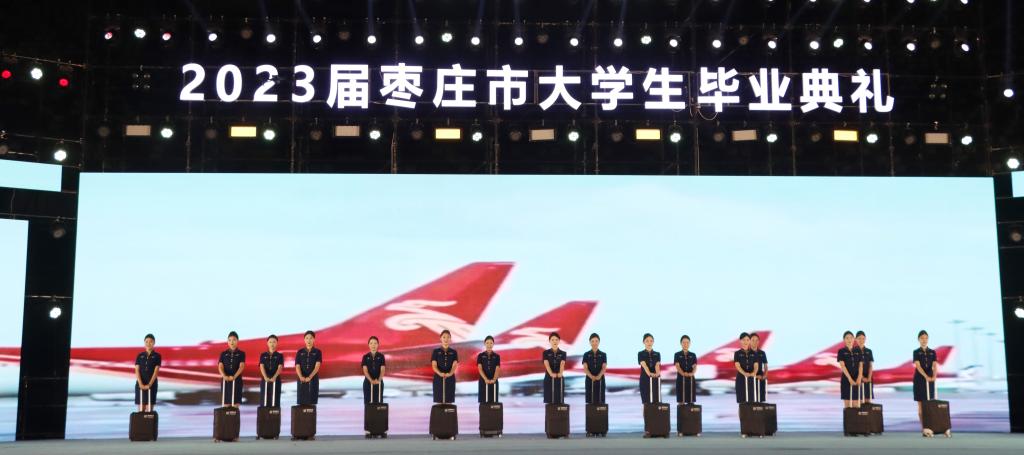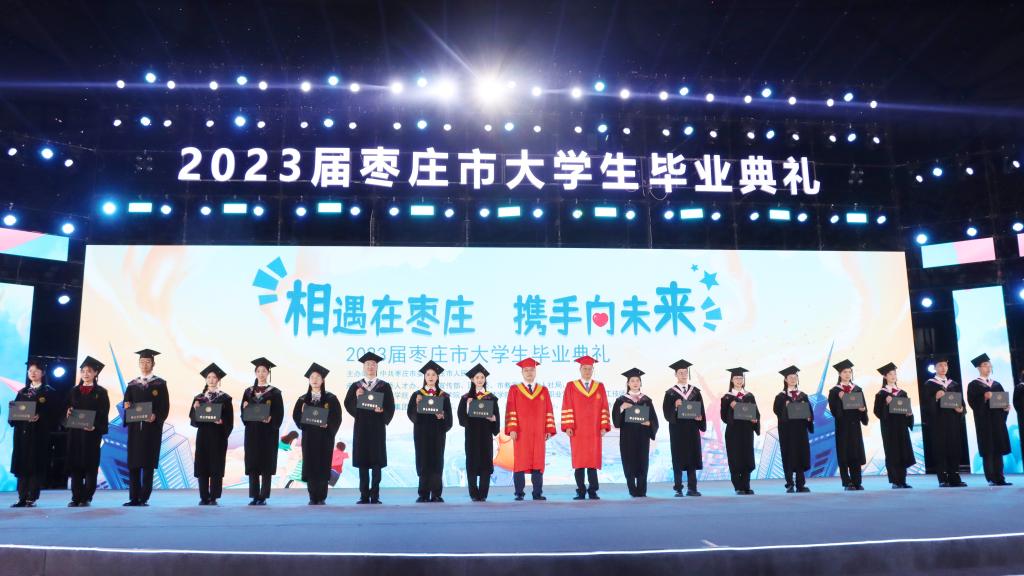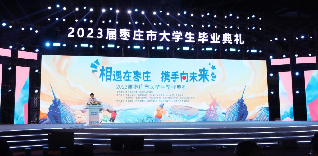 6月16日晚,由枣庄市委、市政府主办的“相遇在枣庄 携手向未来”2023届枣庄市大学生毕业典礼在枣庄市体育场举行。团省委副书记张超,市委常委、宣传部部长、市委教育工委书记陈永生分别致辞。LETOU国际米兰官网党委书记高峰、校长李文喜,枣庄市副市长张庆伟,市政协副主席、市工信局局长刘宗国,枣庄职业学院党委书记郝荣平,枣庄技师学院党委书记马宏伟出席。来自LETOU国际米兰官网、枣庄职业学院、枣庄技师学院、枣庄科技职业学院、山东化工技师学院的两万五千余名师生代表以及部分企业代表参加典礼。