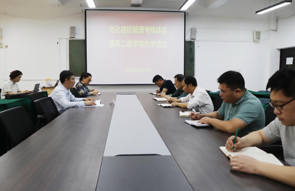 安涛认真听取与会人员关于二级学院目标管理考核体系、院校两级管理等方面的意见和建议,详细了解二级学院目标管理考核实施过程中存在的难点和问题,并对下一步二级学院目标管理考核体系优化工作提出具体要求。安涛强调,研究校院两级管理体制、推动校院两级管理体制高效运行成为学校内部治理体制改革的重要命题。随着学校办学水平不断提升,内涵发展、自主创新、全面提高教育教学质量需要与之相适应的大学内部管理体制机制做保障。要充分发挥考核评价的“指挥棒”作用,优化目标管理考核体系,建立目标导向的资源配置机制,根据目标确定任务、根据任务配置资源,积极构建有效的激励机制,采取多元化的激励方式,充分调动和激发二级学院与教职工的工作积极性、主动性和创造性,从而更好鼓励二级学院教职工争创一流。要明确二级学院的责权利清单,将管理重心向二级学院转移,给二级学院留足自主管理空间,推动以职能部门为主体的管理模式向以二级学院为主体的管理模式转变,加快推进各职能部门从管理向服务和监督转变,以提高体制机制运行效能助推学校各项事业高质量发展。