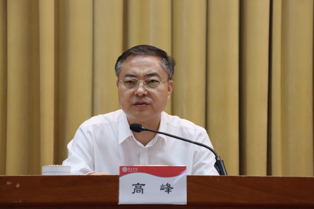 高峰在讲话中表示,完全拥护、坚决服从省委决定,将在省委、省政府的坚强领导下,与其他班子成员一道,团结带领广大党员干部和全校师生,接续奋斗、和衷共济、苦干实干,为推进学校高质量发展、办好人民满意的教育奉献自己的全部心力。一是始终对党忠诚、清醒坚定,使学校成为坚持党的全面领导的坚强阵地。坚决扛牢管党治党、办学治校主体责任,坚定捍卫“两个确立”、坚决做到“两个维护”。二是始终牢记重托、担当作为,奋力推动高质量发展行稳致远。完整、准确、全面贯彻新发展理念,持续深化重点领域综合改革,更好适应中国式现代化对高等教育提出的新要求,推动学校事业发展再上新台阶。三是始终团结协作、事业至上,带头做维护团结的表率。牢固树立大局意识和“一盘棋”思想,严格贯彻落实党委领导下的校长负责制,坚持党的民主集中制,营造团结和谐、干事创业的良好氛围。四是始终严于律己、清正廉洁,永葆共产党人的政治本色。抓班子、带队伍,以永远在路上的清醒和坚定,推进全面从严治党向基层延伸、向纵深发展,带头营造风清气正的良好政治生态。