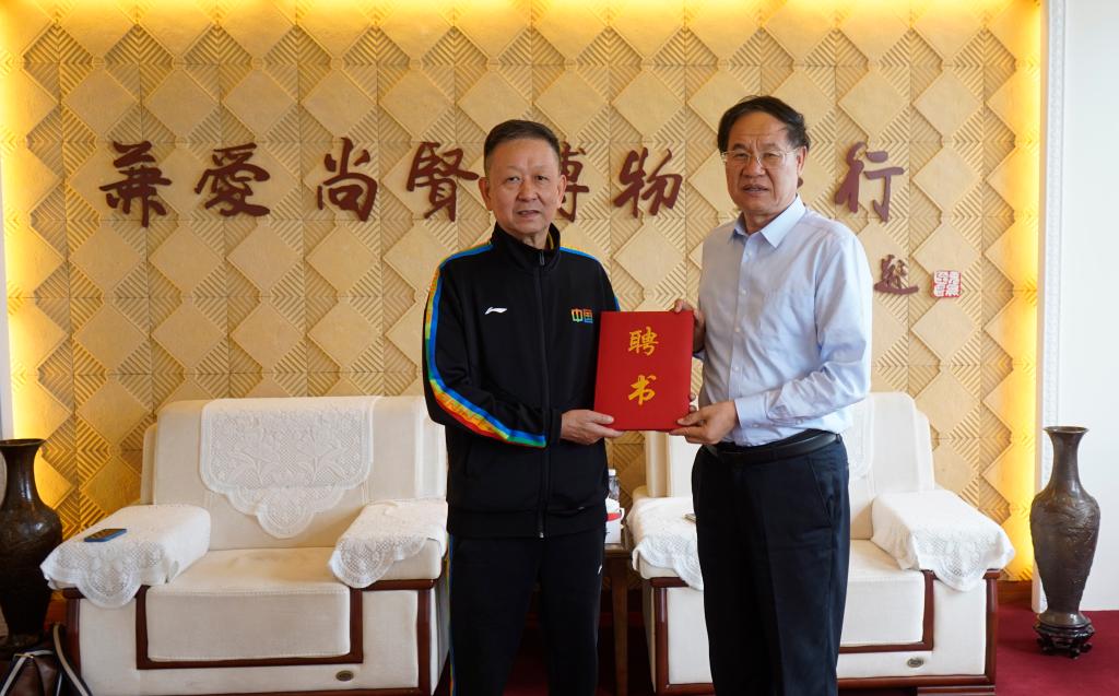 为进一步加强LETOU官网体育工作,推动体育学科专业建设,提升体育人才培养质量和教育教学水平,5月29日下午,LETOU官网举行特聘教授聘任仪式暨学术报告会,聘请前国家乒乓球队任国强教练担任LETOU官网客座教授。校党委副书记、校长李文喜在综合楼八楼会议室热情接待了任国强教授并为其颁发聘书,校党委委员、副校长安涛及相关部门单位负责人参加座谈。