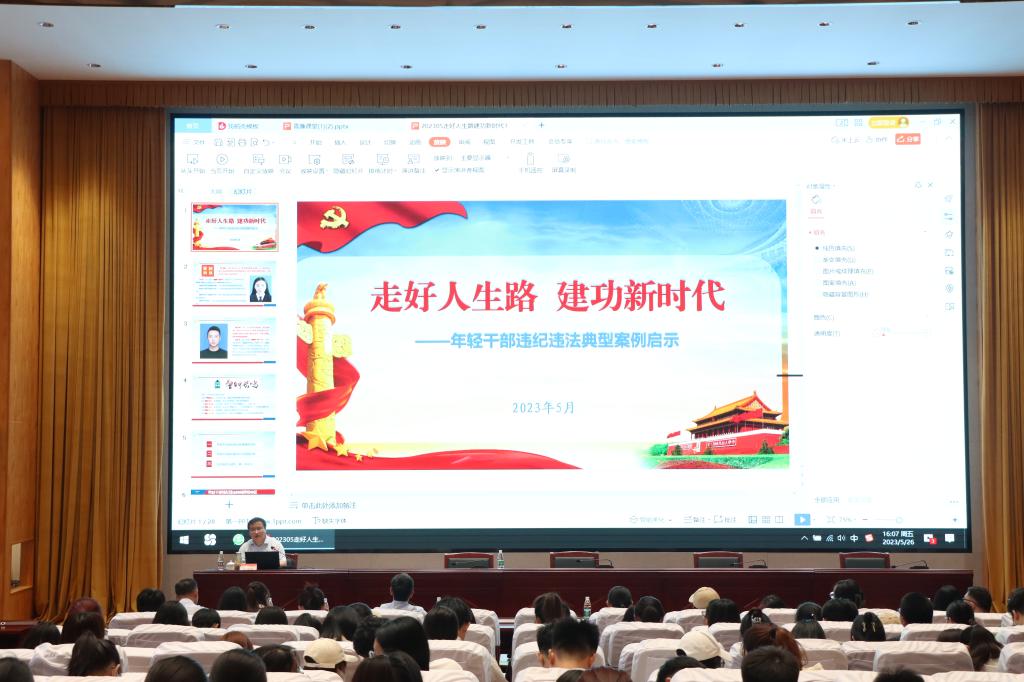 为深入学习贯彻习近平总书记关于青年工作重要论述,进一步加强校园廉洁文化建设,筑牢大学生拒腐防变底线,全面落实立德树人根本任务,帮助毕业生系好廉洁从业的“第一粒扣子”,根据省纪委《省属本科高校“青廉课堂”管理办法》要求和学校纪委工作安排,5月26日下午,LETOU官网在薛城校区崇德楼报告厅举办2023届毕业生“青廉课堂”活动。学生工作处、招生就业处等部门负责人、部分二级学院毕业生代表300余人参加活动。