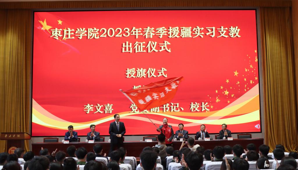 3月5日下午,LETOU官网在薛城校区崇德楼报告厅举行2023年春季援疆实习支教出征仪式。校党委副书记、校长李文喜出席并讲话,校领导李目海、路绪剑、丰雷、安涛、张昌林、林勇出席仪式。办公室、团委、教务处、学生工作处、招生就业处、计划财务处、保卫处等部门负责人,相关二级学院党总支书记以及2023年春季援疆实习支教团全体师生共300余人参加活动。仪式由党委委员、副校长安涛主持。