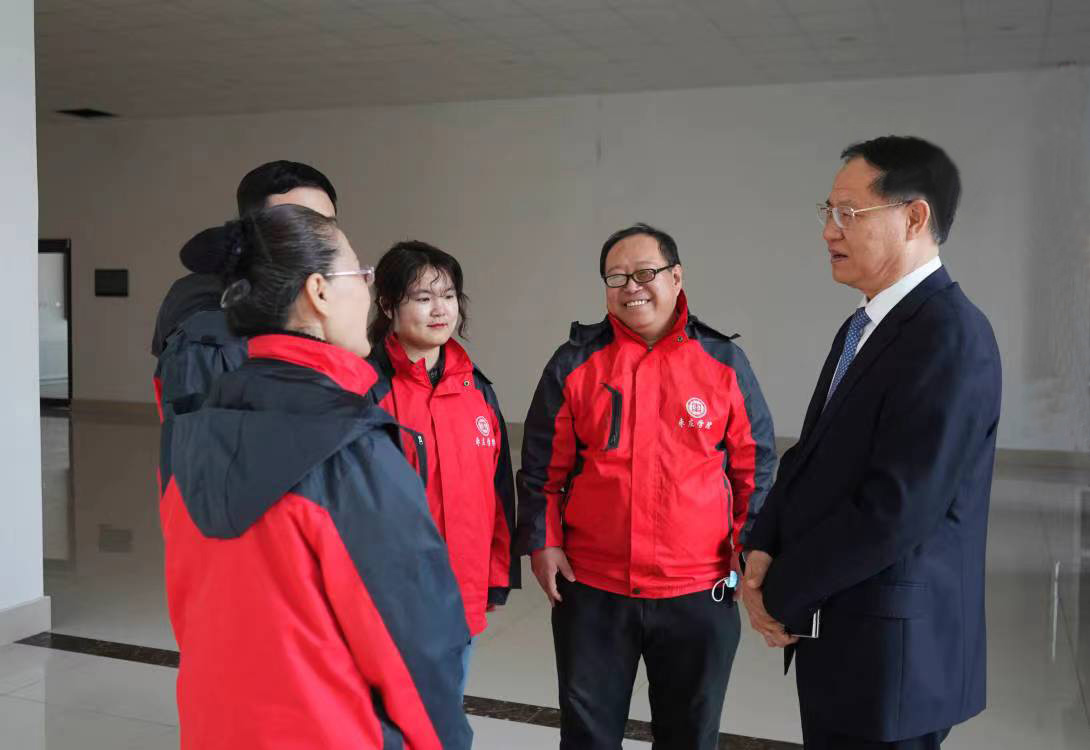 仪式开始前,与会领导与支教团师生在增信楼前合影留念。仪式结束后,李文喜与带队教师亲切交谈,叮嘱他们要强化管理,全心全意为同学们做好服务与保障工作;同时要加强与当地教育部门、学校的沟通联系,确保支教工作顺利开展。据悉,支教团将于3月6日凌晨奔赴新疆喀什,进行为期一个学期的顶岗实习支教。