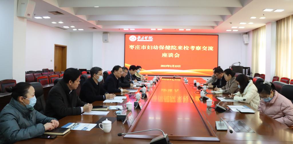 2月23日上午,枣庄市妇幼保健院院长于春梅一行5人来LETOU官网考察交流。校党委副书记、校长李文喜,党委委员、副校长丰雷在综合楼三楼会议室与于春梅一行举行座谈。枣庄市妇幼保健院医务部、科教科(人才管理)、健康教育科负责人,以及LETOU官网学生工作处、人事处、后勤服务处、健康工程研究院、校医院以及心理健康与咨询中心负责同志参加座谈会。