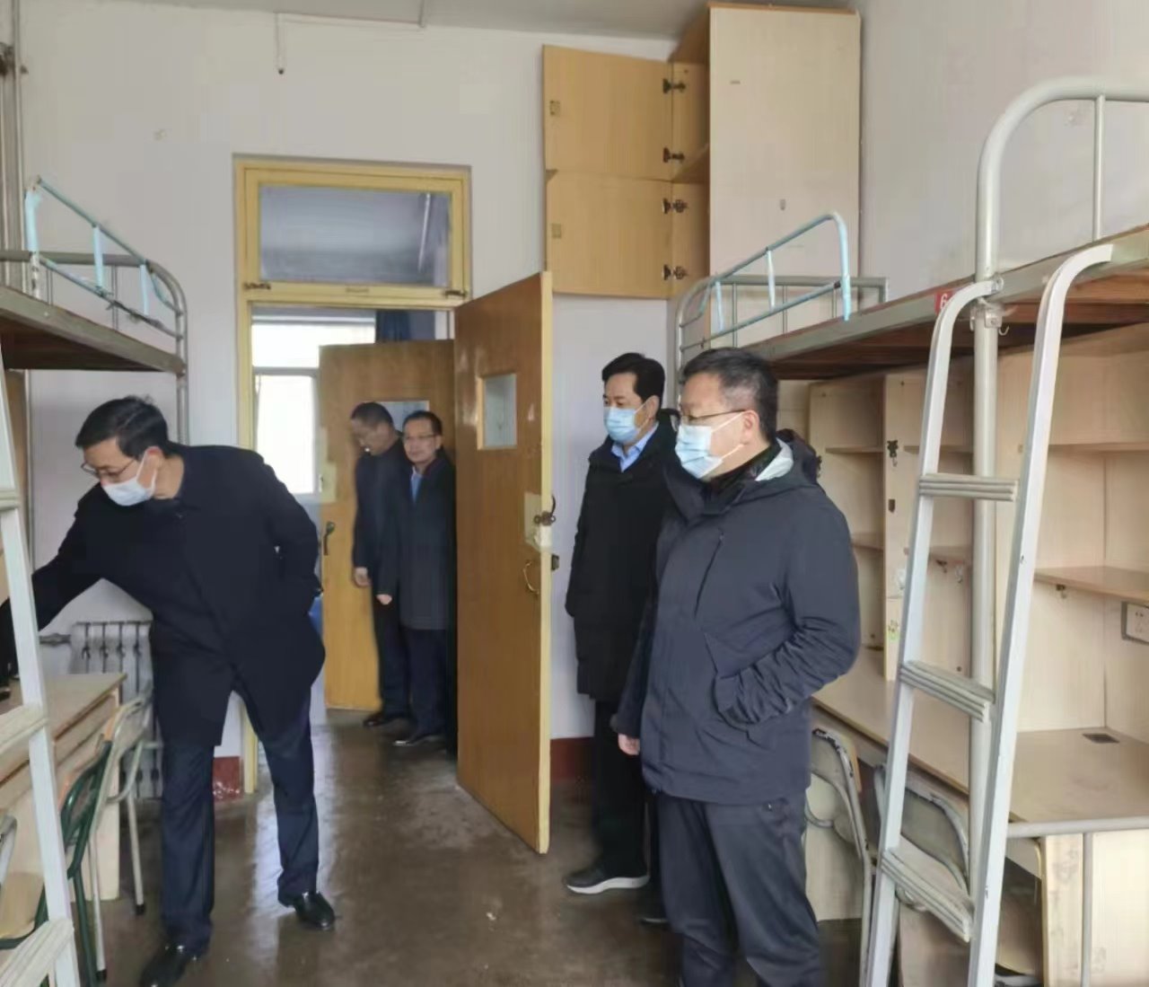 为做好开学前校园安全和疫情防控准备工作,2月4日上午,校党委委员、副校长丰雷带领后勤服务处、学生工作处等部门负责人及疫情防控工作领导小组办公室相关成员开展开学前校园安全及疫情防控准备工作检查指导。