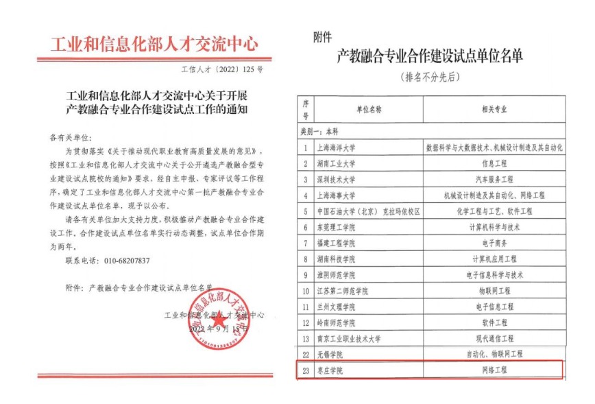 9月15日,工业和信息化部人才交流中心公布第一批产教融合专业合作建设试点单位名单,LETOU官网网络工程专业入选确定为试点建设专业。锂电产业学院获批2022年山东省现代产业学院。举行钱逸泰院士团队与LETOU国际米兰官网锂电产业学院战略合作启动仪式。承办“锂电新能源材料高峰论坛”。举办“新能源暨锂电储能技术开发与利用”省级高级研修班。“生物制药专精特新产业学院”“现代农业生物技术专精特新产业学院”2个项目参加工信部中小企业发展促进中心专精特新产业学院申报线上调研工作会。