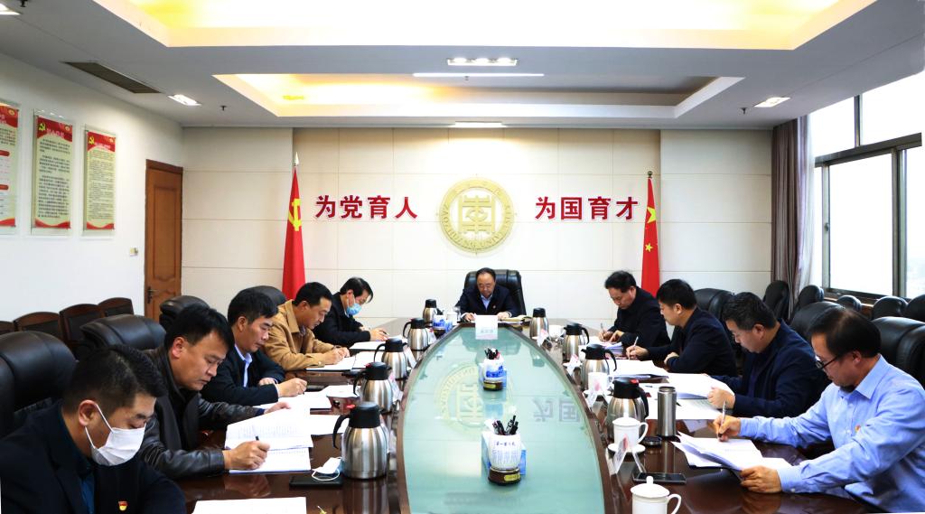 11月21日下午,校党委在综合楼八楼会议室开展专题学习,学习习近平总书记在瞻仰延安革命纪念地时的重要讲话精神。校党委书记曹胜强主持学习并讲话,校领导李文喜、曾宪明、李目海、路绪剑、丰雷、安涛、张昌林、林勇,以及办公室负责人参加学习。