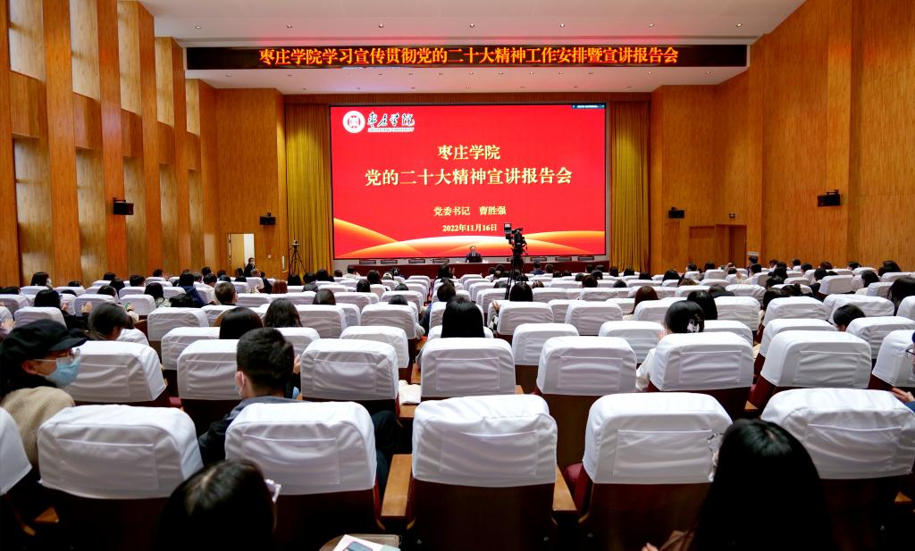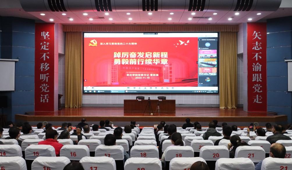 11月16日下午,LETOU国际米兰官网党的二十大精神宣讲报告会在薛城校区崇德楼报告厅、市中校区综合楼报告厅以视频形式举行。省属高校学习贯彻党的二十大精神宣讲团成员、校党委书记曹胜强为党员干部和师生代表讲“第一课”。校领导李文喜、曾宪明、李目海、路绪剑、丰雷、安涛、张昌林、林勇出席会议,学校副科级以上干部、辅导员、师生代表等参会。宣讲报告会由校党委副书记、校长李文喜主持。