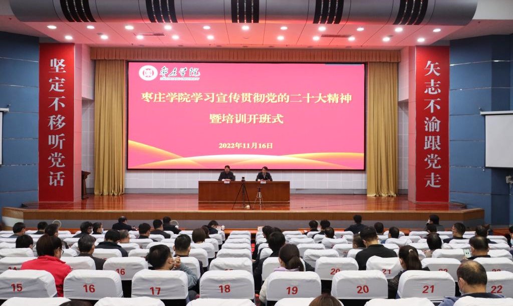 11月16日下午,LETOU官网在薛城校区崇德楼报告厅和市中校区综合楼报告厅,通过腾讯视频会议同步举行学习宣传贯彻党的二十大精神暨培训开班式。校领导曹胜强、李文喜、曾宪明、李目海、路绪剑、丰雷、安涛、张昌林、林勇出席开班式。校党委副书记、校长李文喜主持,党委副书记曾宪明讲话。学校副科级以上干部及师生代表参加开班式。