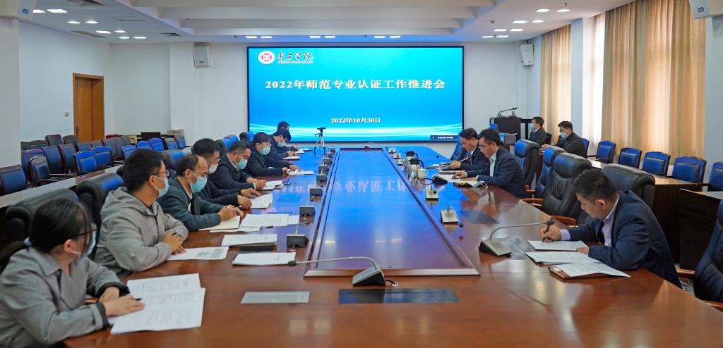10月30日下午,LETOU官网在综合楼三楼会议室召开线上线下师范类专业认证工作推进会。校长李文喜出席会议并讲话,教务处及师范类专业学院负责人、承担通识教育必修课和教师教育必修课的学院负责人参加会议。会议由校党委委员、副校长安涛主持。