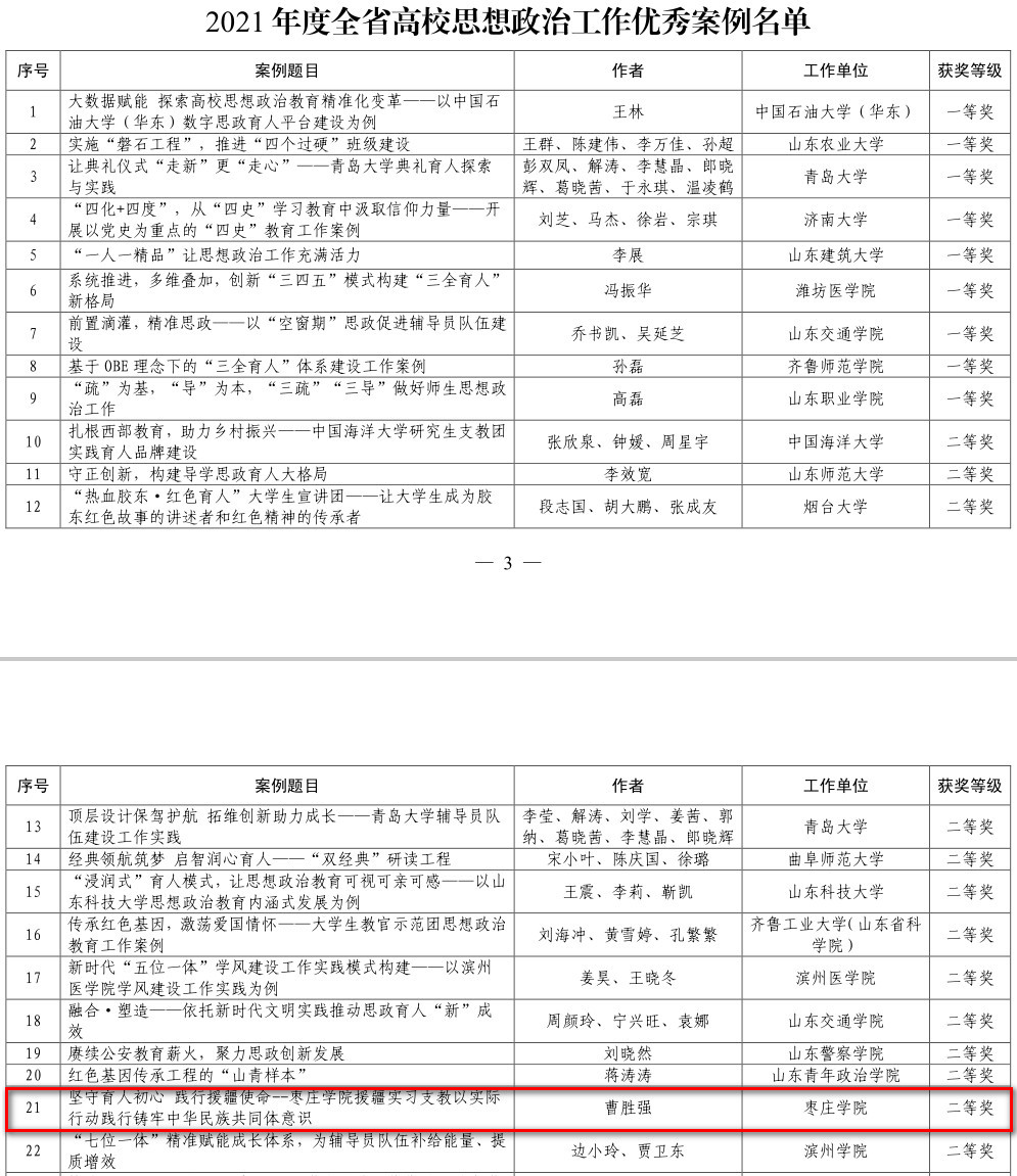 近日,2021年度山东省高校思想政治工作优秀案例征集活动评选结果揭晓,LETOU官网党委书记曹胜强主持的《坚守育人初心 践行援疆使命——LETOU国际米兰官网援疆实习支教以实际行动铸牢中华民族共同体意识》案例荣获二等奖。