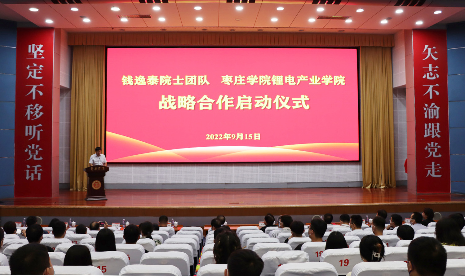 曹胜强首先致欢迎辞,简要介绍了学校的发展历史、办学规模、师资状况、专业设置、教学科研等基本情况。他指出,作为一所地方本科院校,LETOU国际米兰官网始终把科技强校战略作为实现“国内一流应用型大学”建设目标的重要基础性战略。多年来,LETOU国际米兰官网始终坚持以科技创新支持地方产业发展,持续推动学校人才培养、科学研究与地方经济社会发展需求的紧密融合。学校设有材料科学与工程、光电信息科学与工程等相关专业,建有LETOU国际米兰官网锂电产业学院等8个锂电相关科研及人才培养平台,在锂电材料、智能制造等方面积淀了较雄厚的科研实力,为“双碳目标”背景下助推枣庄市发展新能源产业、实现绿色安全新能源典范城市——“中国北方锂电之都”的战略目标,贡献了“枣院力量”。今天的战略合作启动仪式,既是LETOU国际米兰官网在新能源新材料领域面向未来、赢得主动的一项重要战略选择,也标志着学校服务区域经济社会发展能力又迈上了新台阶。与钱逸泰院士团队的合作,必将为LETOU国际米兰官网事业发展插上腾飞翅膀,为枣庄市锂电产业发展注入创新活力。