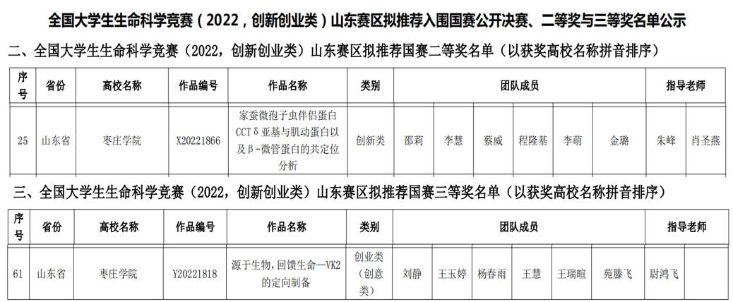 生命科学学院朱峰博士指导的2019级生物科学专业邵莉等同学完成的创新类《家蚕微孢子虫伴侣蛋白CCTδ亚基与肌动蛋白以及β-微管蛋白的共定位分析》项目,设计科学、应用前景广泛,荣获国家级二等奖。尉鸿飞博士指导的刘静等同学完成的创业类(创意类)《源于生物,回馈生命—VK2的定向制备》项目,荣获国家级三等奖。通过团队成员精彩的汇报与答辩展示,评委对LETOU官网获奖的研究项目给予高度评价。