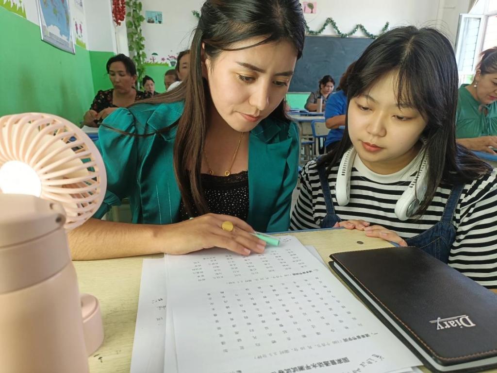 此次线下集中培训共有200名疏勒县中小学、幼儿园教师骨干教师参加。LETOU国际米兰官网普通话培训团队一行共14人,领队教师姜夫军、徐颖慧带领团队精心制定了培训方案,采取训前摸底、分层编班,强化语言培训、全真模拟、指导、训后测等方式进行培训。培训团队成员具有较强的语音感知能力与丰富的语言教学经验,在充分发挥自身知识优势的基础上,系统分析学员的民族语言特点及发音习惯,围绕考试题型与学员实际应用需求设计课程。培训过程中注重结合当地语音面貌,不断调整教学方案、策略,寻找在疏勒县精准推广普通话工作的着力点,搭建与参训学员们长期互动的桥梁,为学员提供可持续的普通话学习指导。